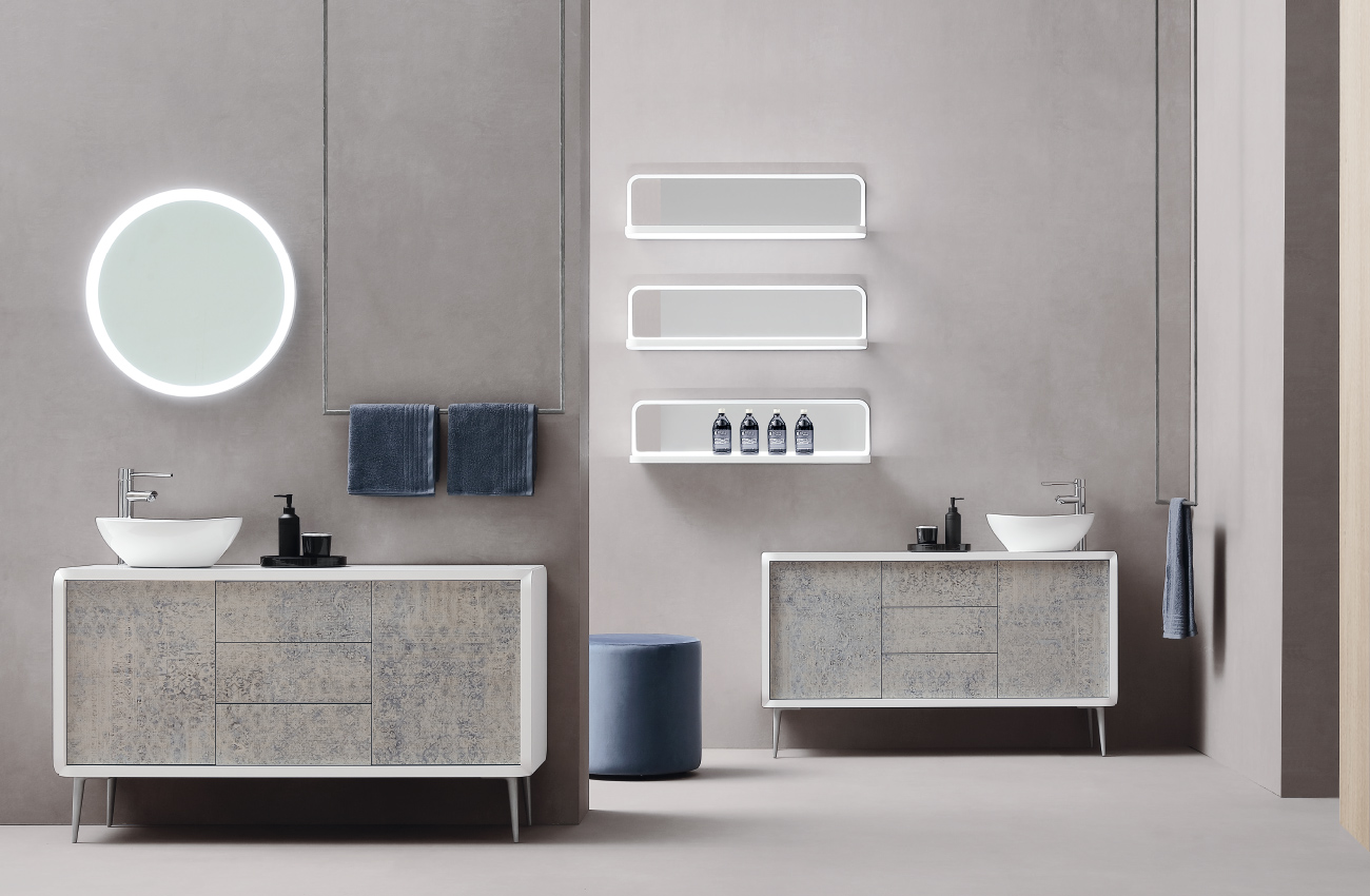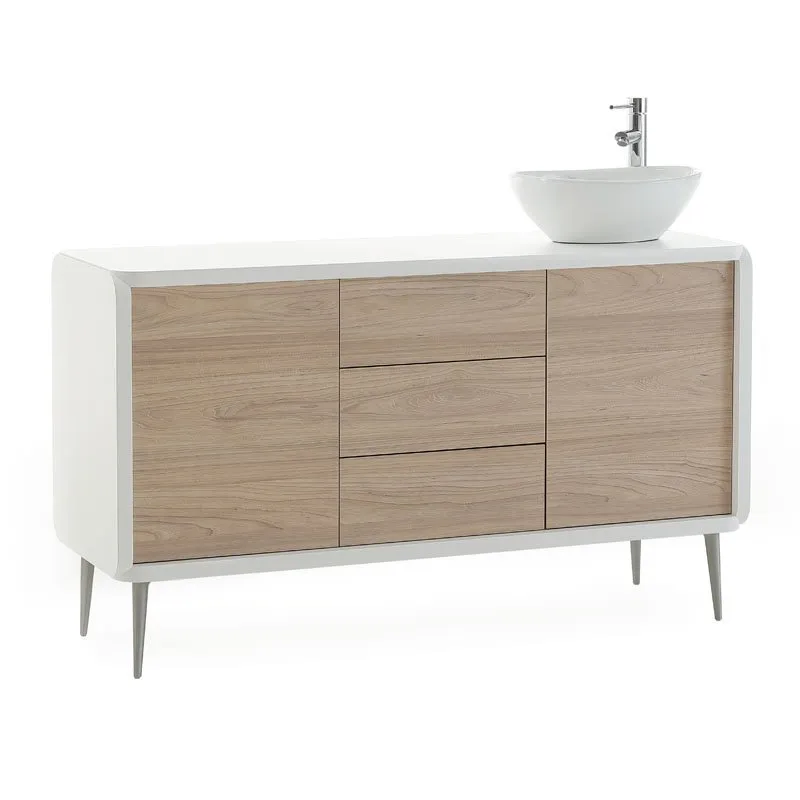 Creo komad namještaja s dvoja vrata, tri središnje ladice i umivaonikom. Umivaonik se može postaviti desno ili lijevo. Mat bijela struktura i vrata dostupna u 4 završne obrade.